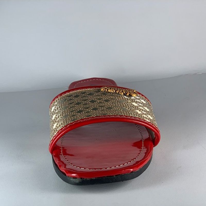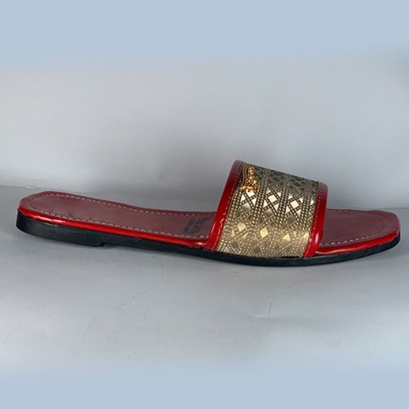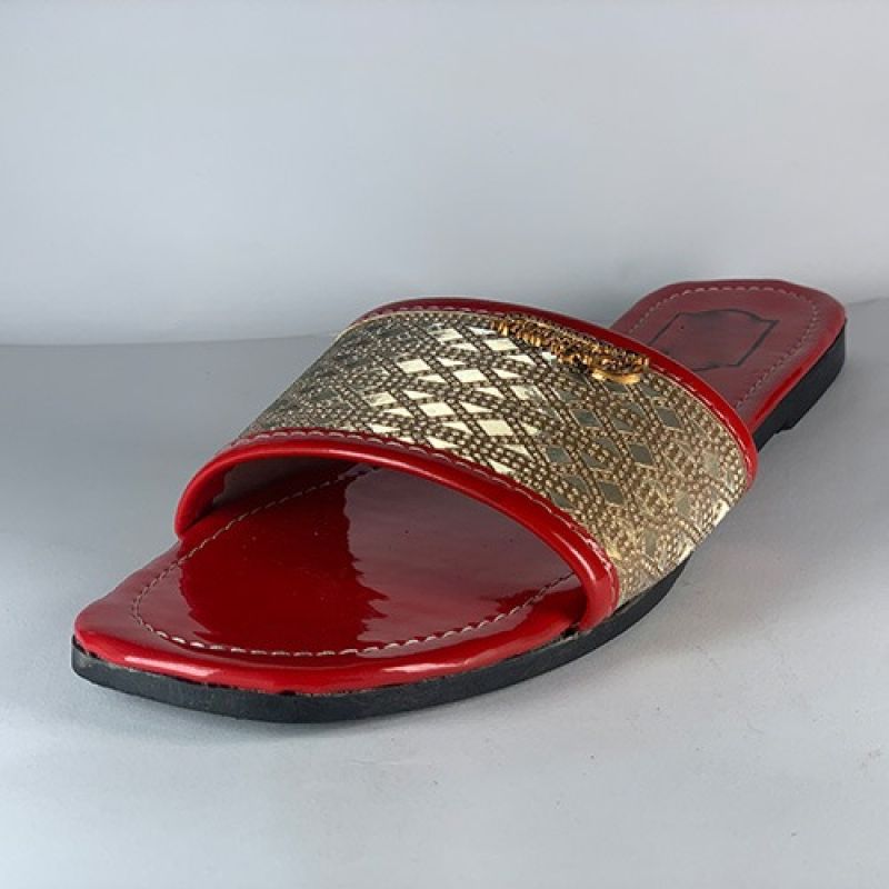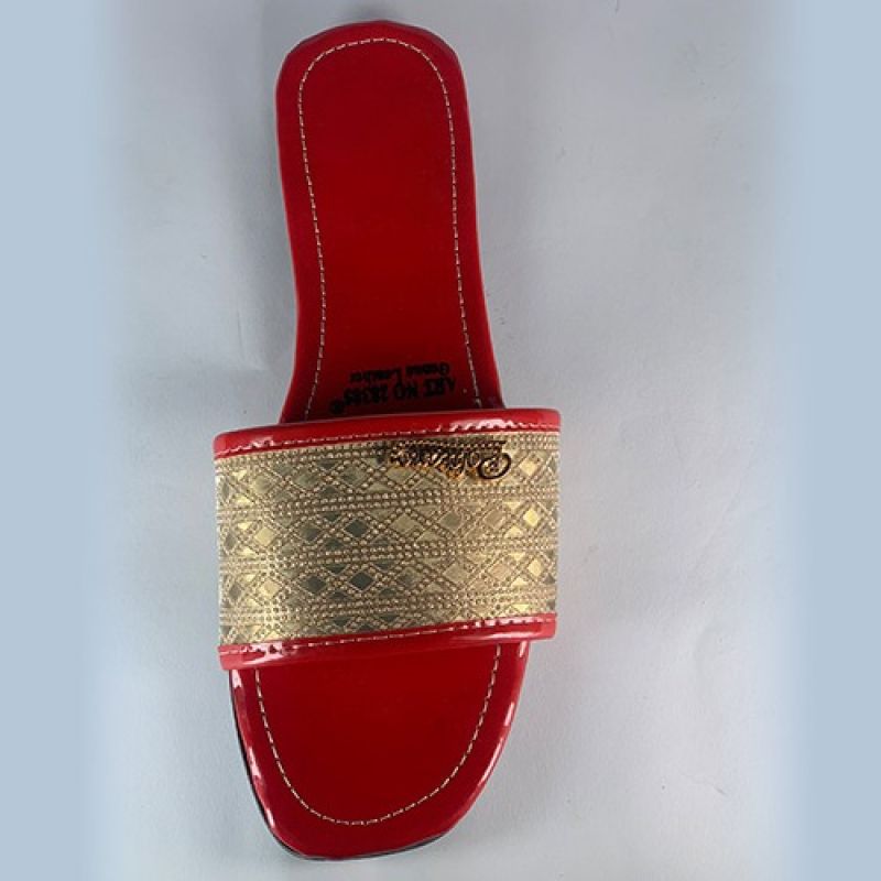 Red ladies flat slippers with black sole