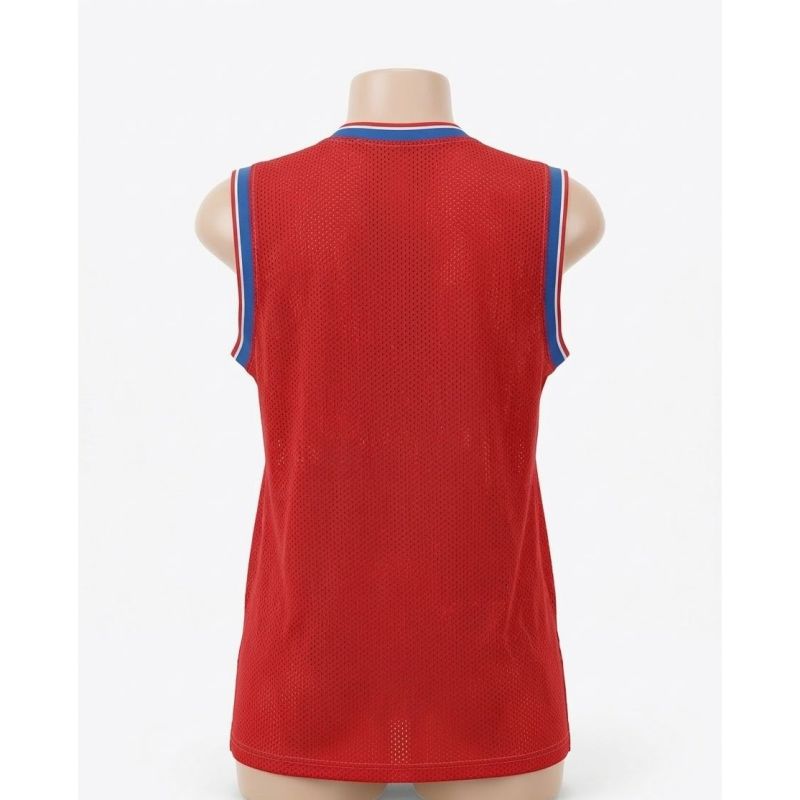Red Mesh Sleeveless Jersey with "HAPPY" Bear Graphic