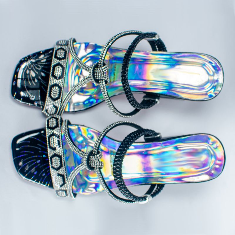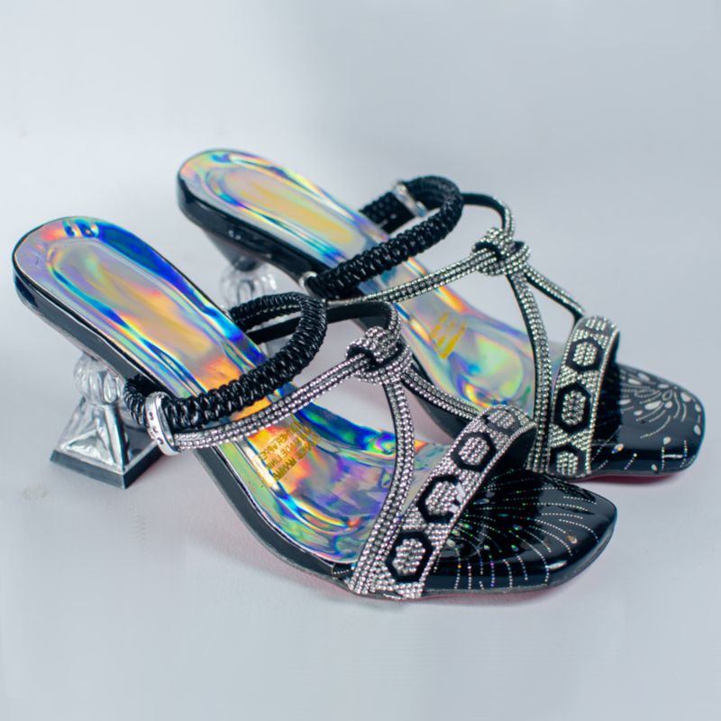 Silver Design Stone Studded High Heel Shoes