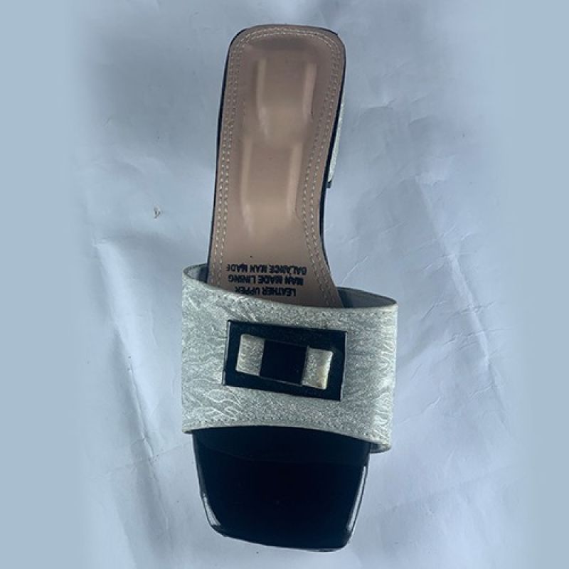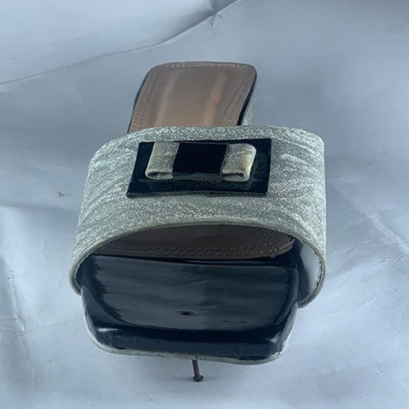 Silver ladies slippers with silver low heel