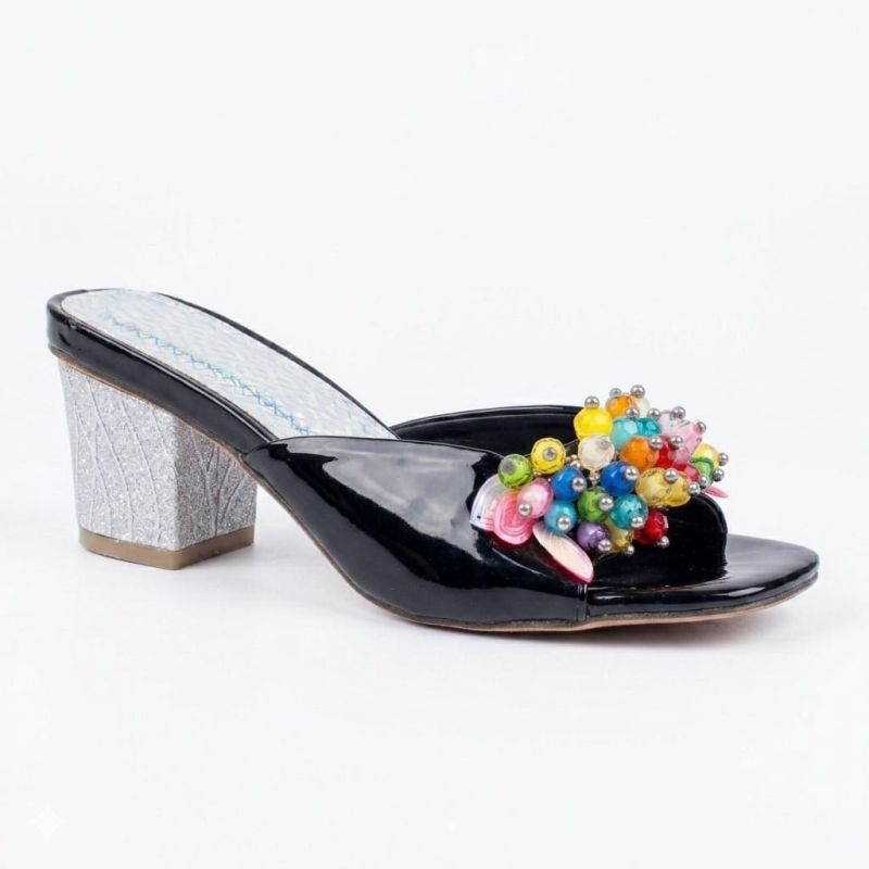 Silver sole and black ladies slippers heel