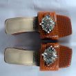 Simple brown low heel slippers with fancy