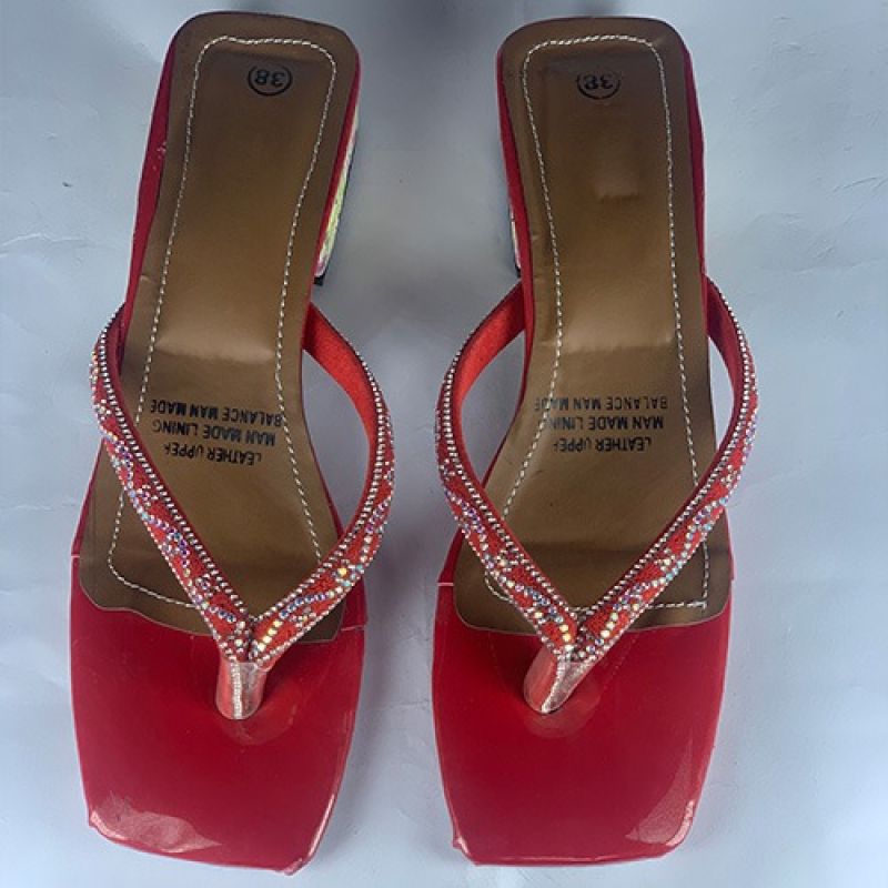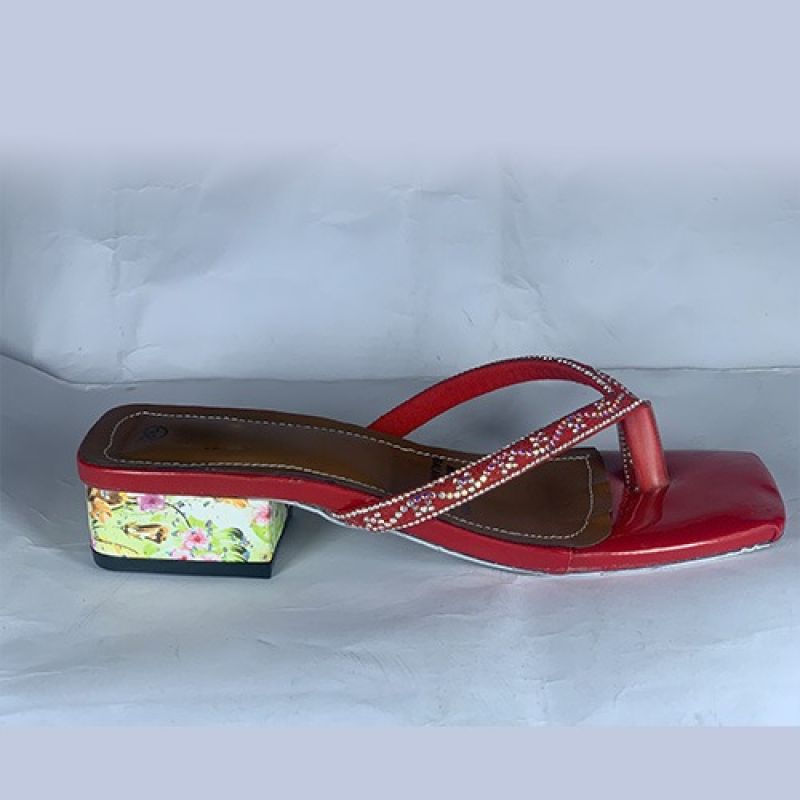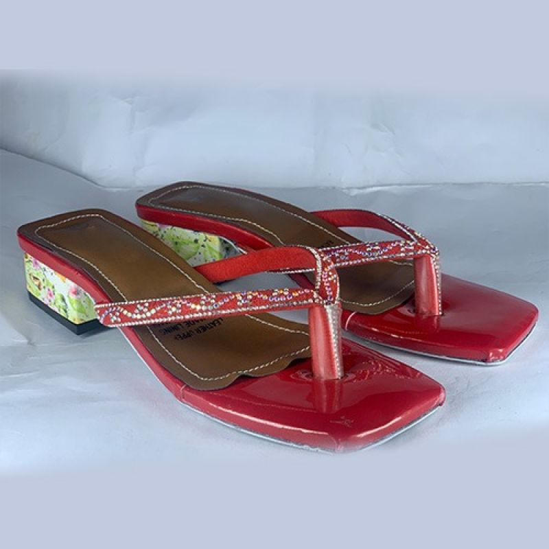 Simple ladies red slippers with low heel