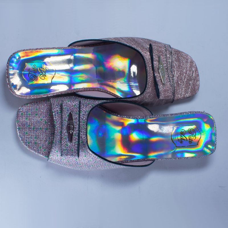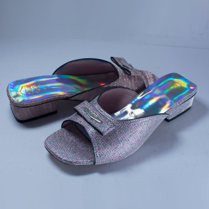 Sliver Design Shiny Low Heel Ladies Shoes