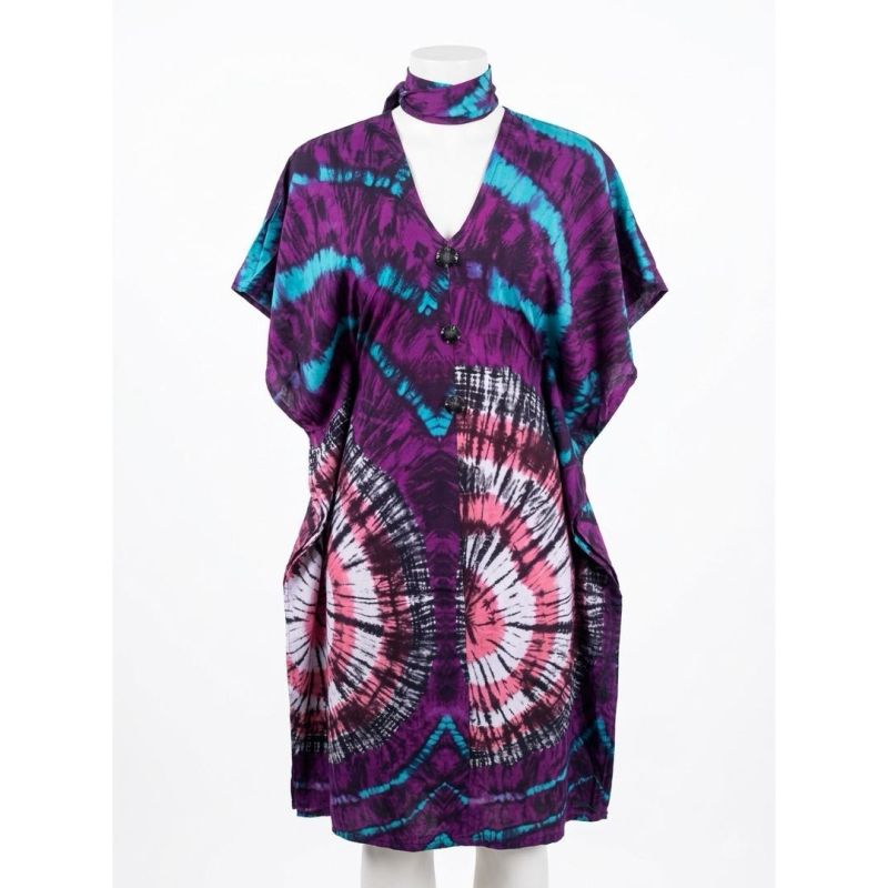 Tie-Dye Caftan Dress with Matching Scarf