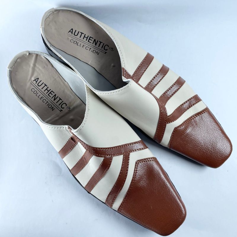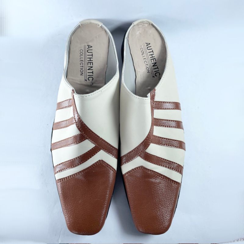 Unique Design White And Brown Stripe Half Cover Shoe