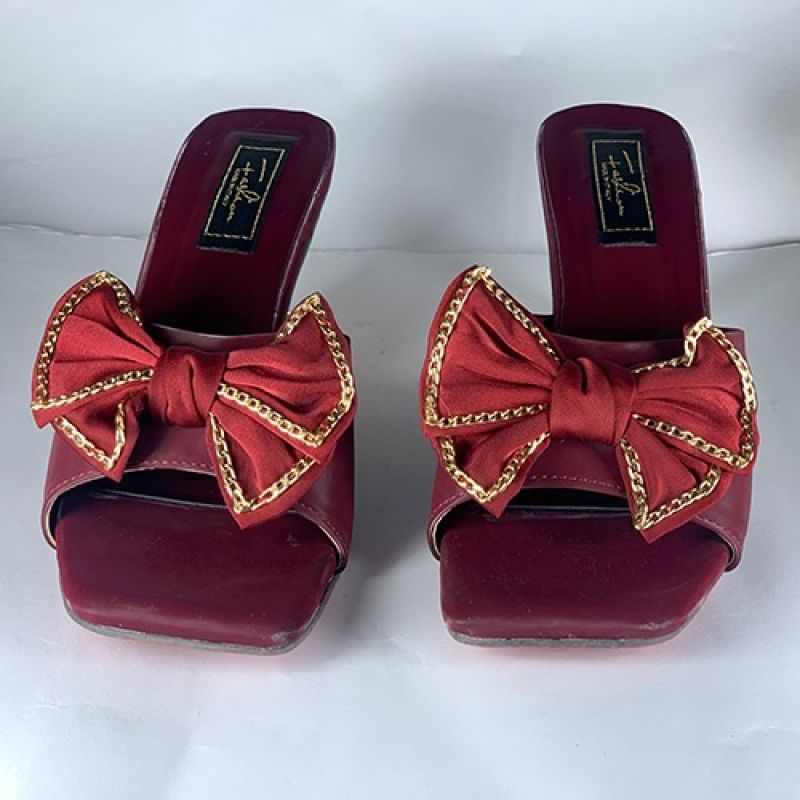 Unique red bowtie flower ladies heel