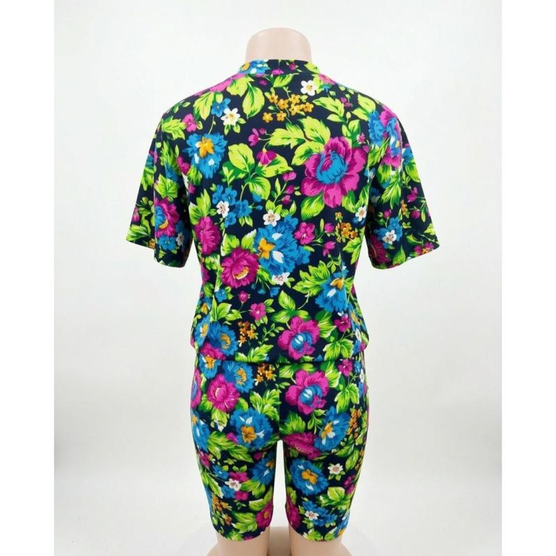 Vibrant Tropical Floral Print T-Shirt and Biker Shorts Set