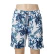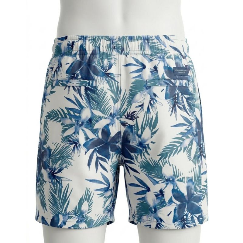 White and Blue Tropical Floral Print Drawstring Swim Shorts