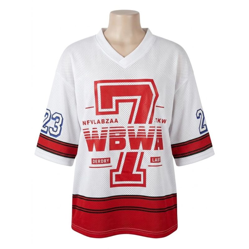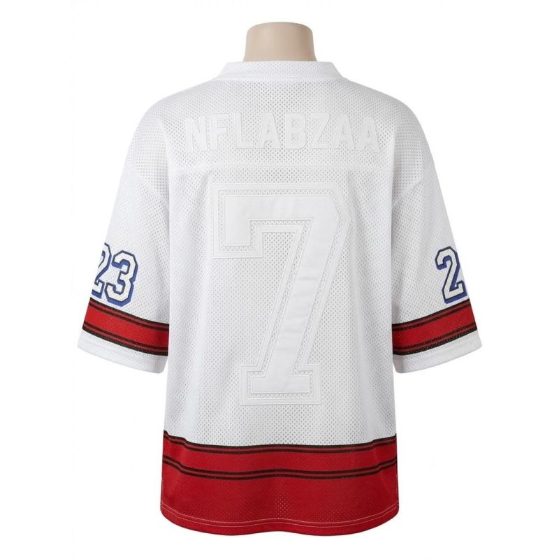 White and Red Mesh Varsity Jersey with Number "7"