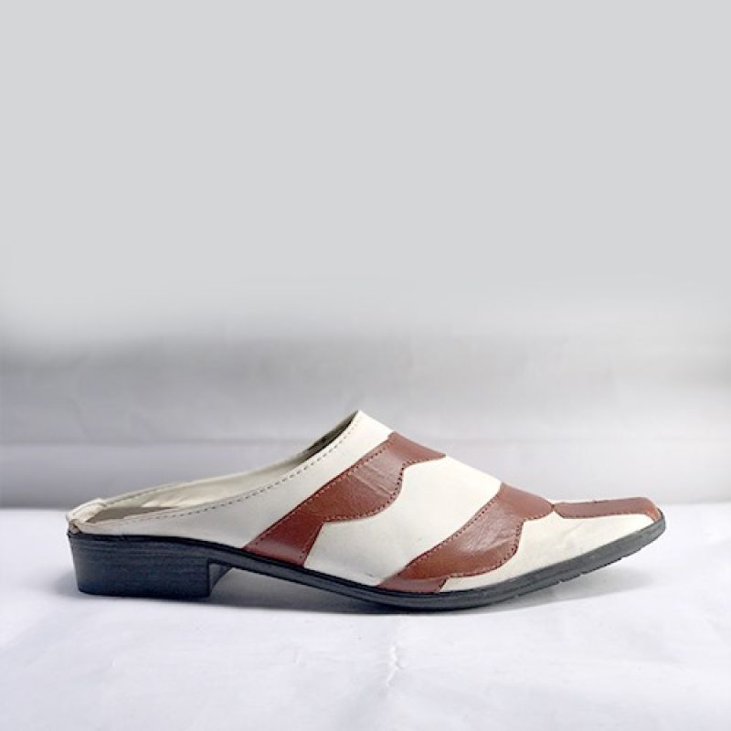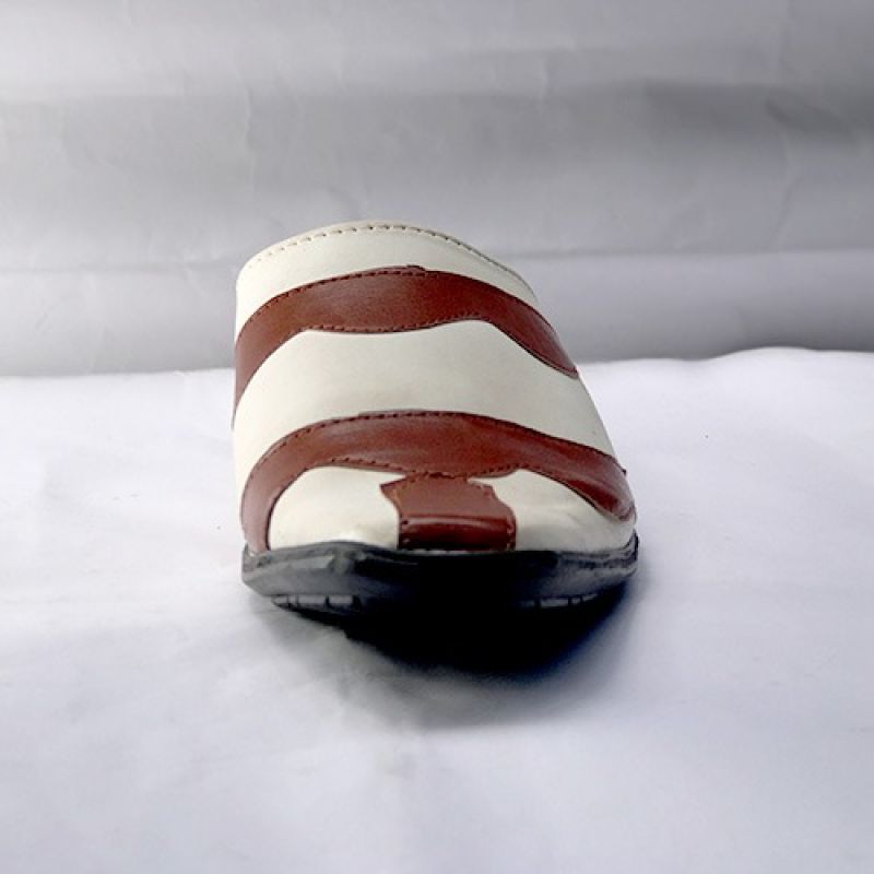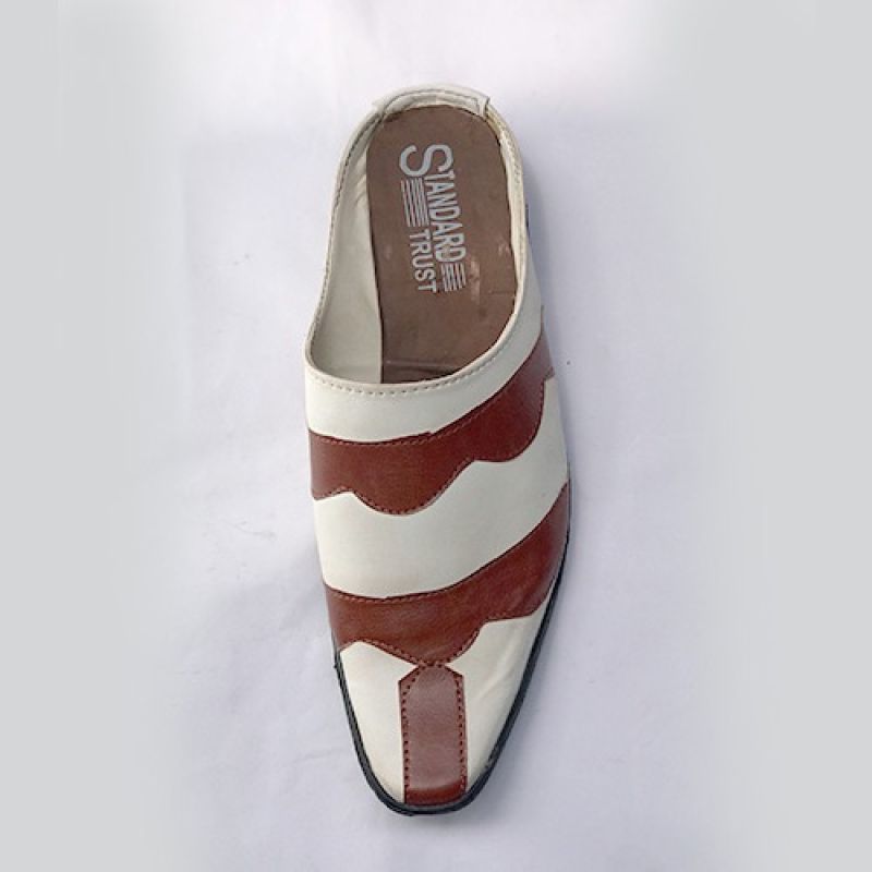 White men half cover shoe with brown leather design