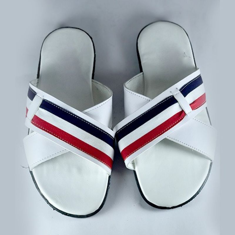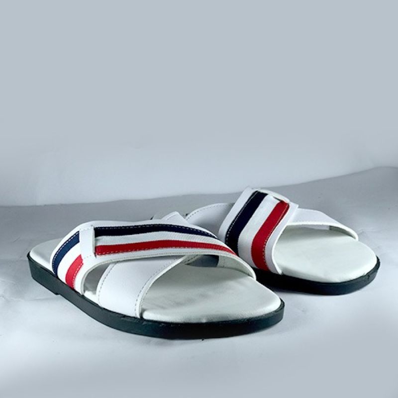 White men slippers with red and dark blue stripe