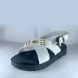 White sandals with black sole