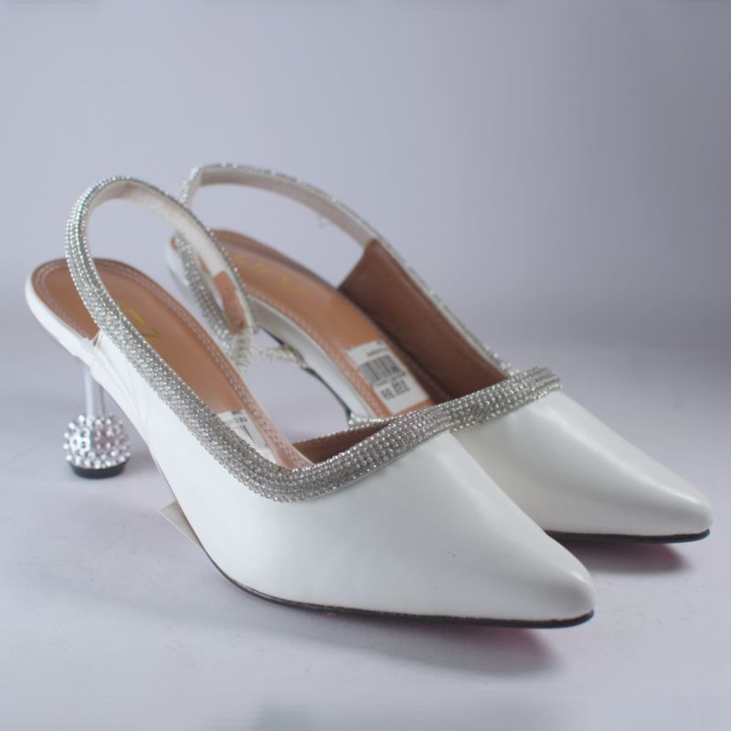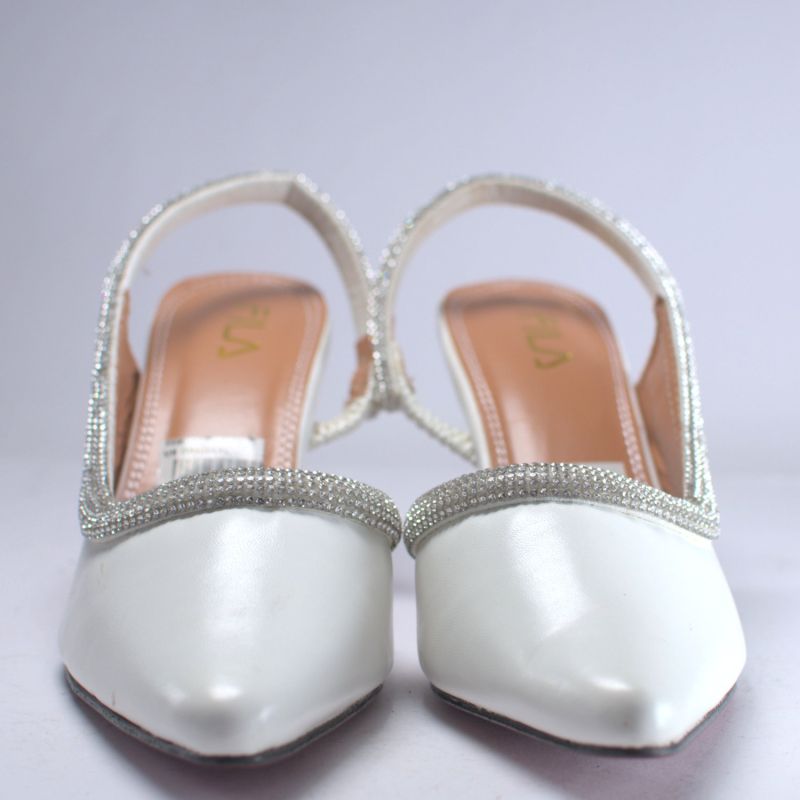 White Satin Women's Bridal High Heel, Half Shoe with Rhinestone.
