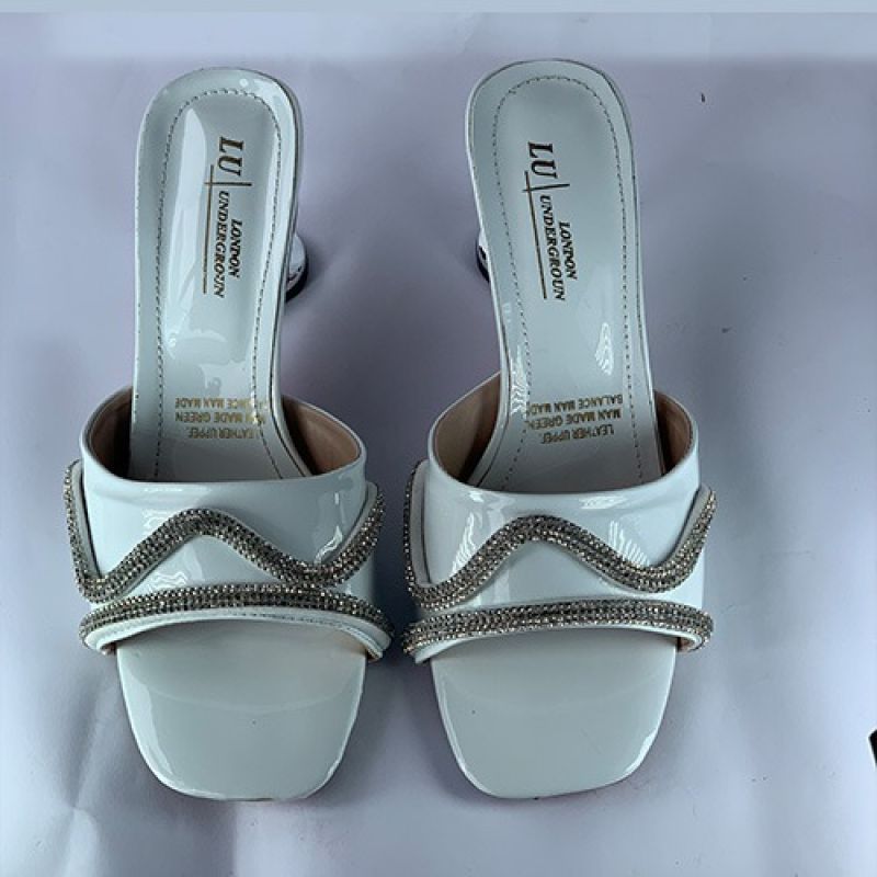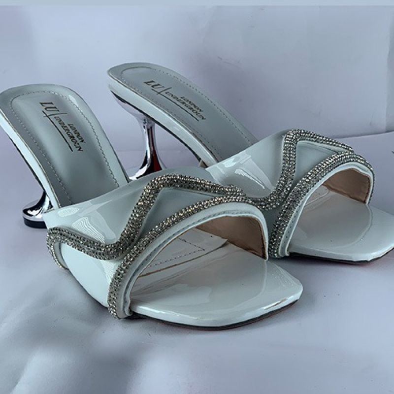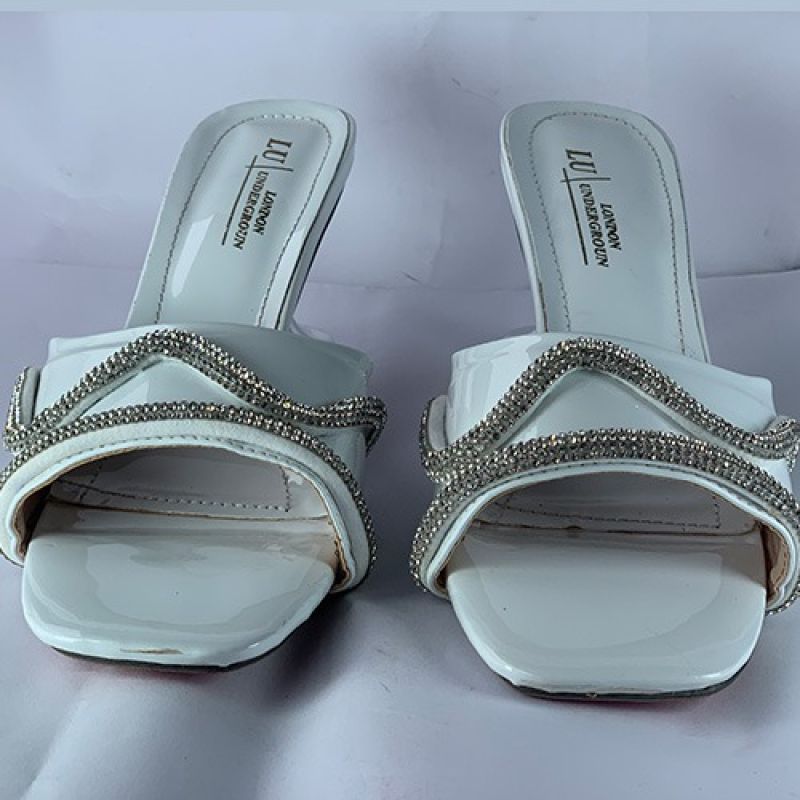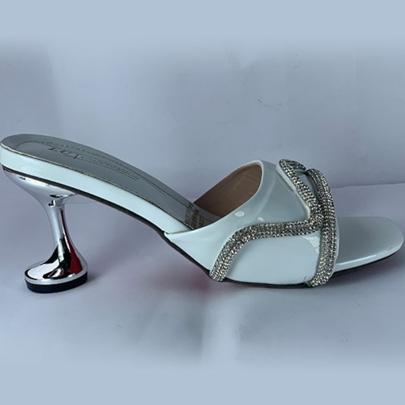 White slippers heel with silver design