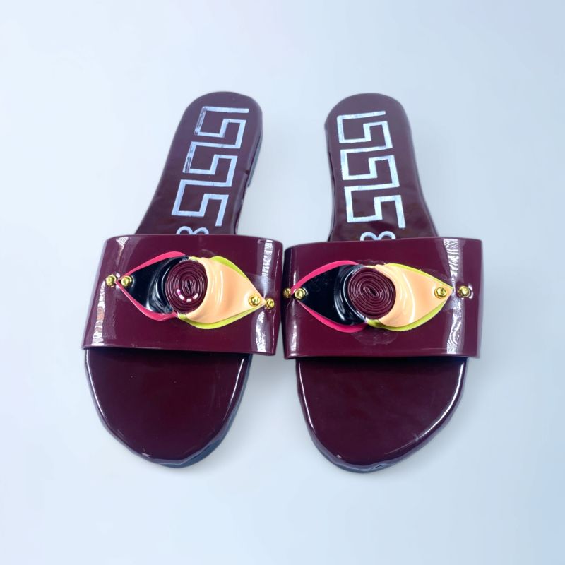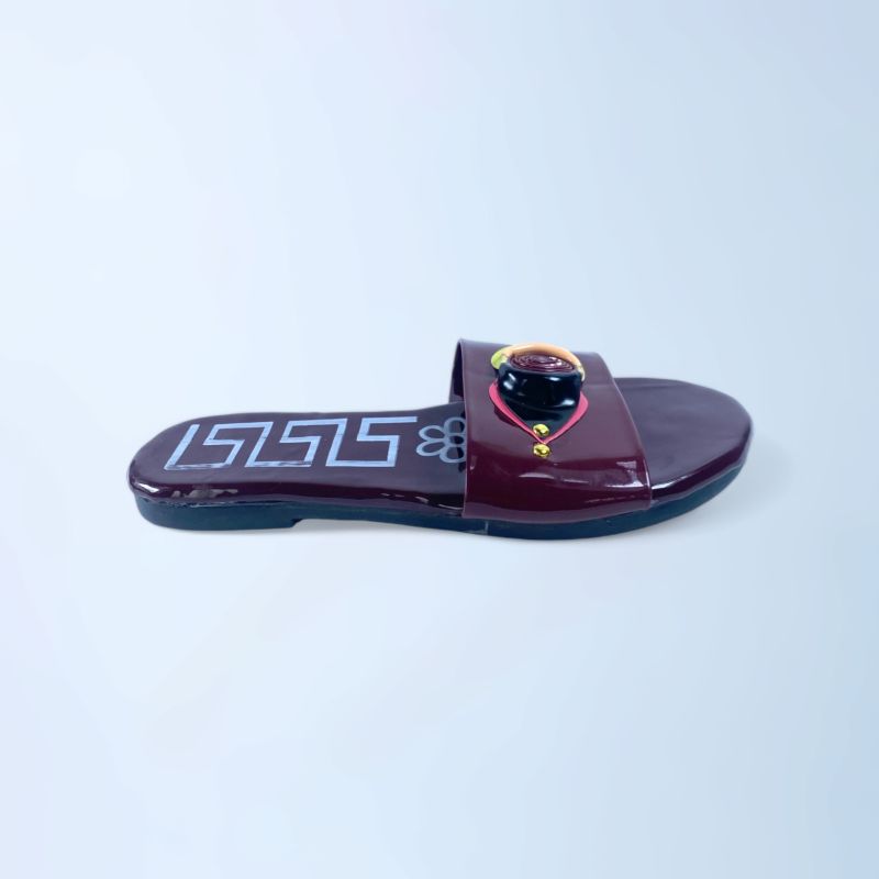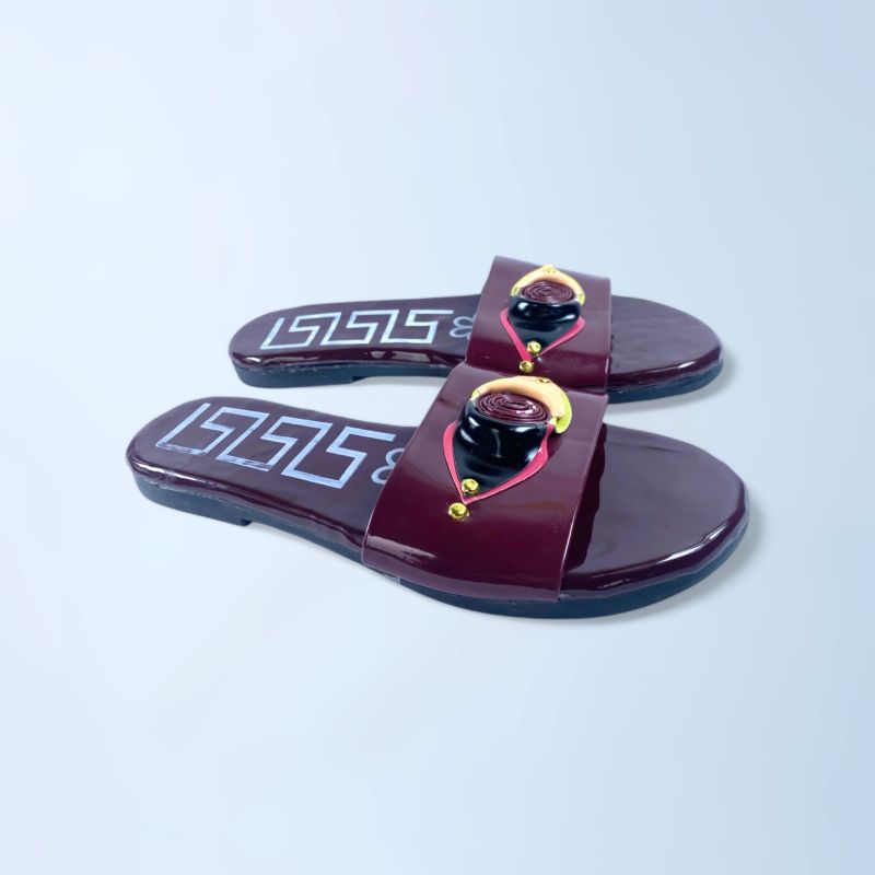 Women Dark Red Buckled Open Toe Flats Slide