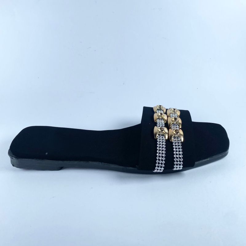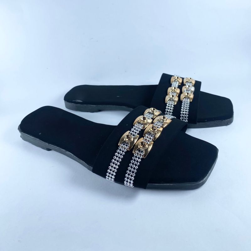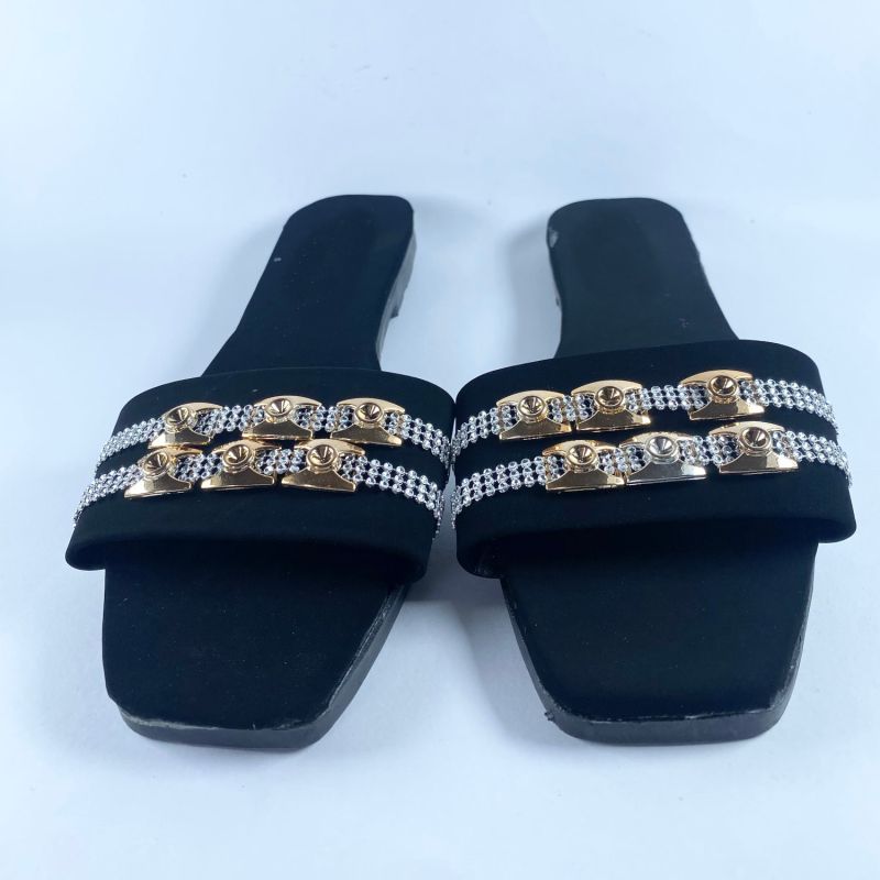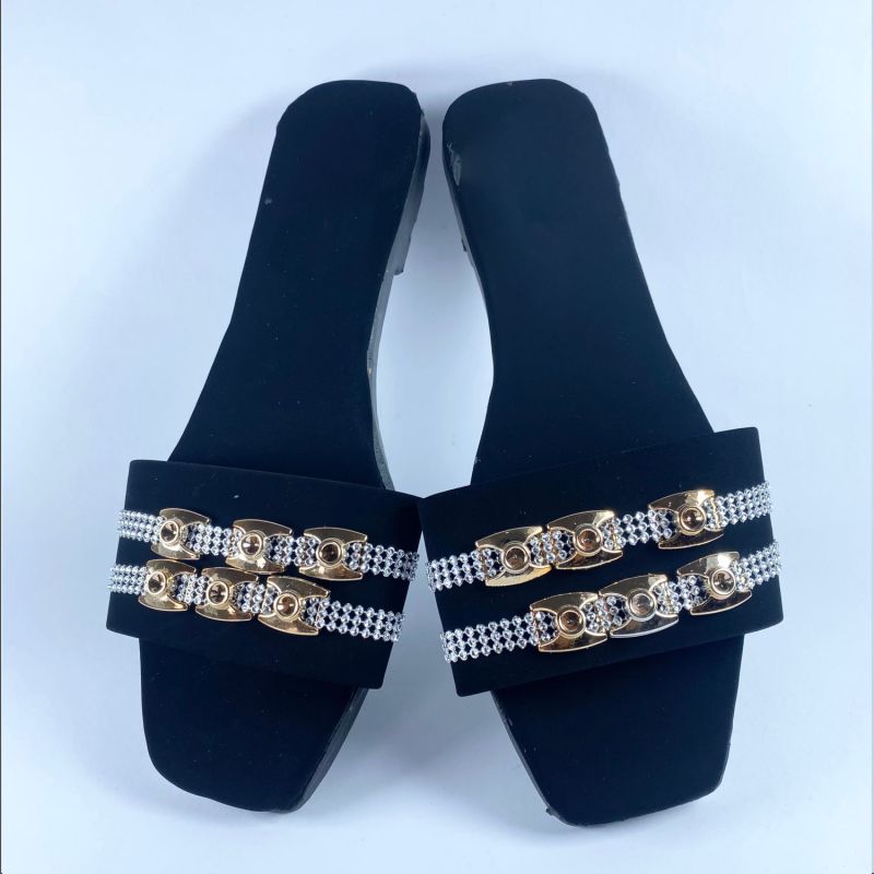 Women Fashion Metal Buckle Top Flat Slide
