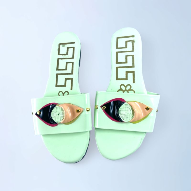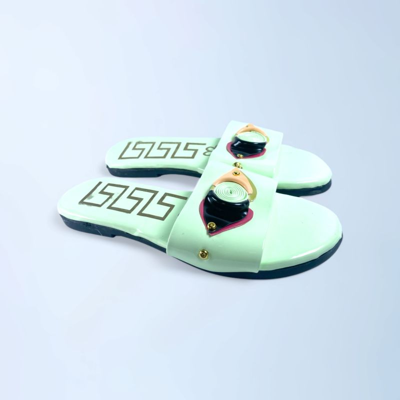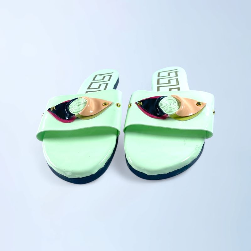 Women Light Green Buckled Open Toe Flats Slide