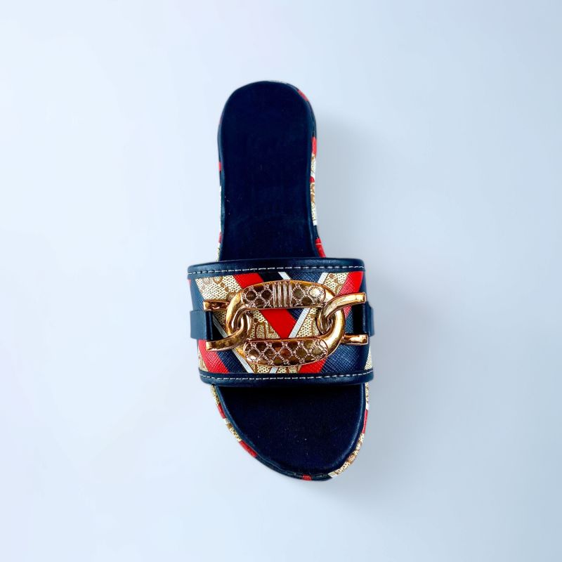 Women's Black Fancy Flat Slide