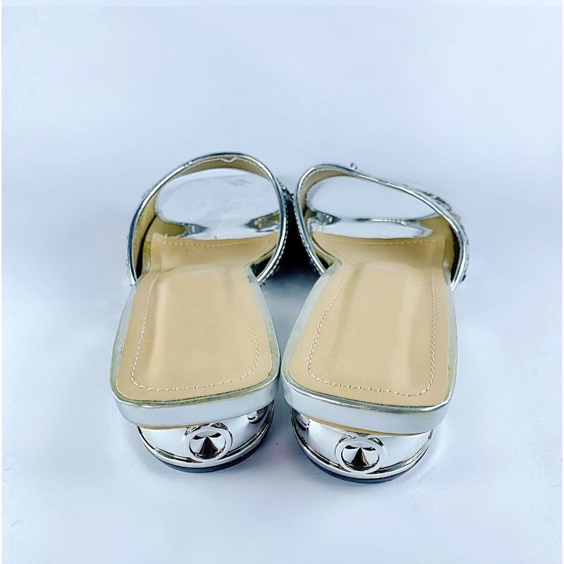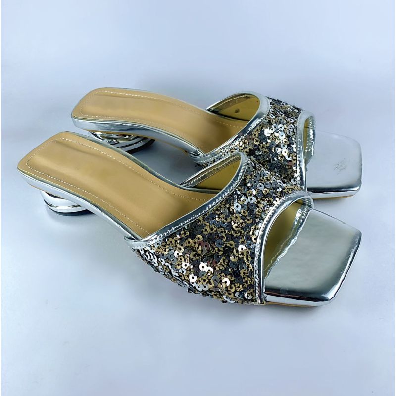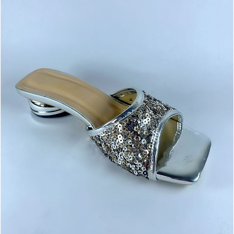Women's Metallic Sparkle Flat Sandals Shiny Square Open Toe Dressy Slides Sandals