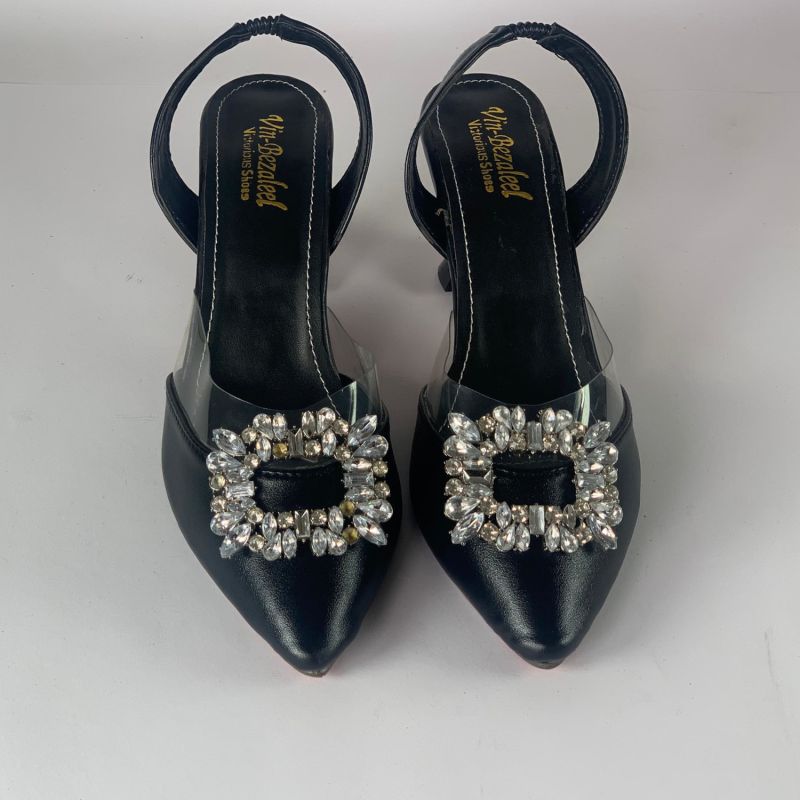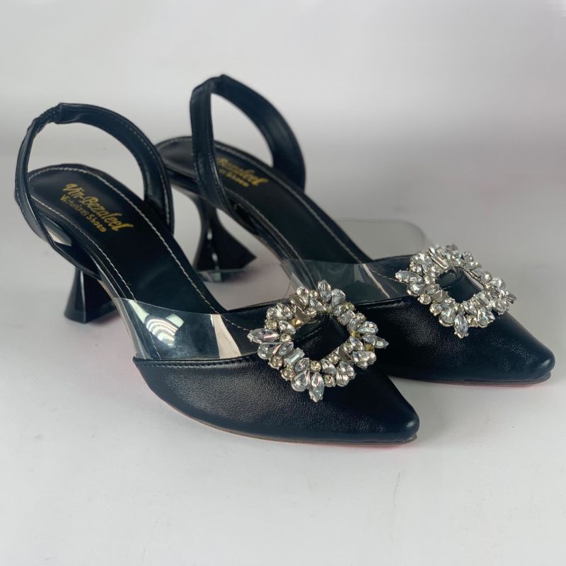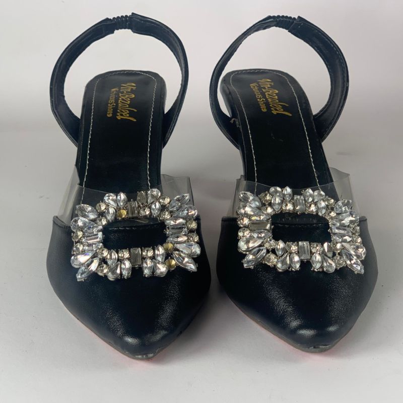 Women's Pointed Toe With Rhinestone Detailing, Back Strap And Open Heel Design, Elegant For Outdoor Parties