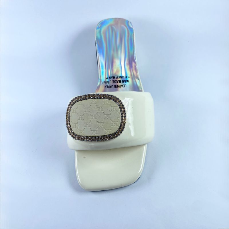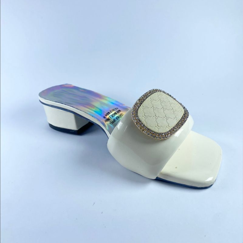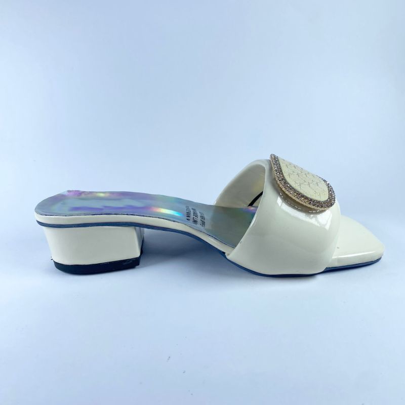 Women's White Fancy Low Heel Shoe