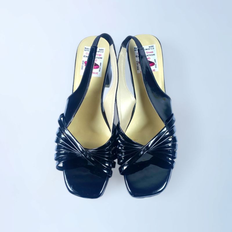 Women Vintage Black Leather Heels