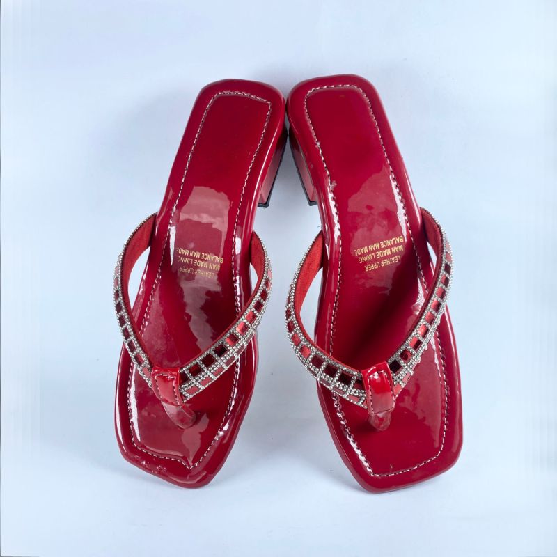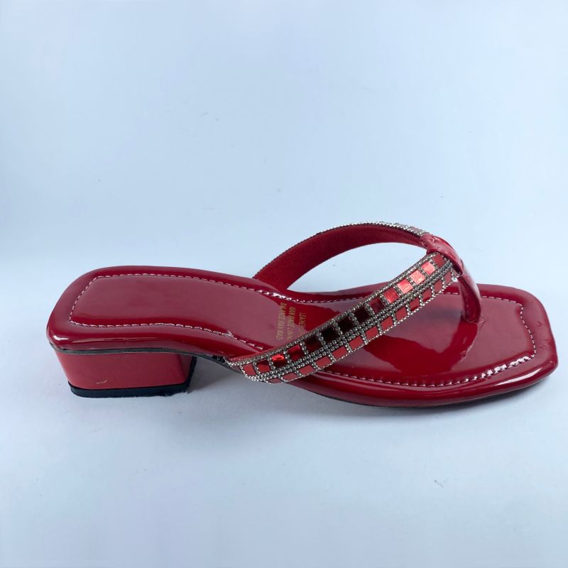 Womens Red Sandals Low Heels Flip Flops Slides